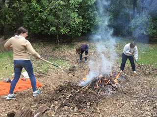 Saturday: We burned branches out in my mom's field all morning and then quit at 2:30 when it started to rain.