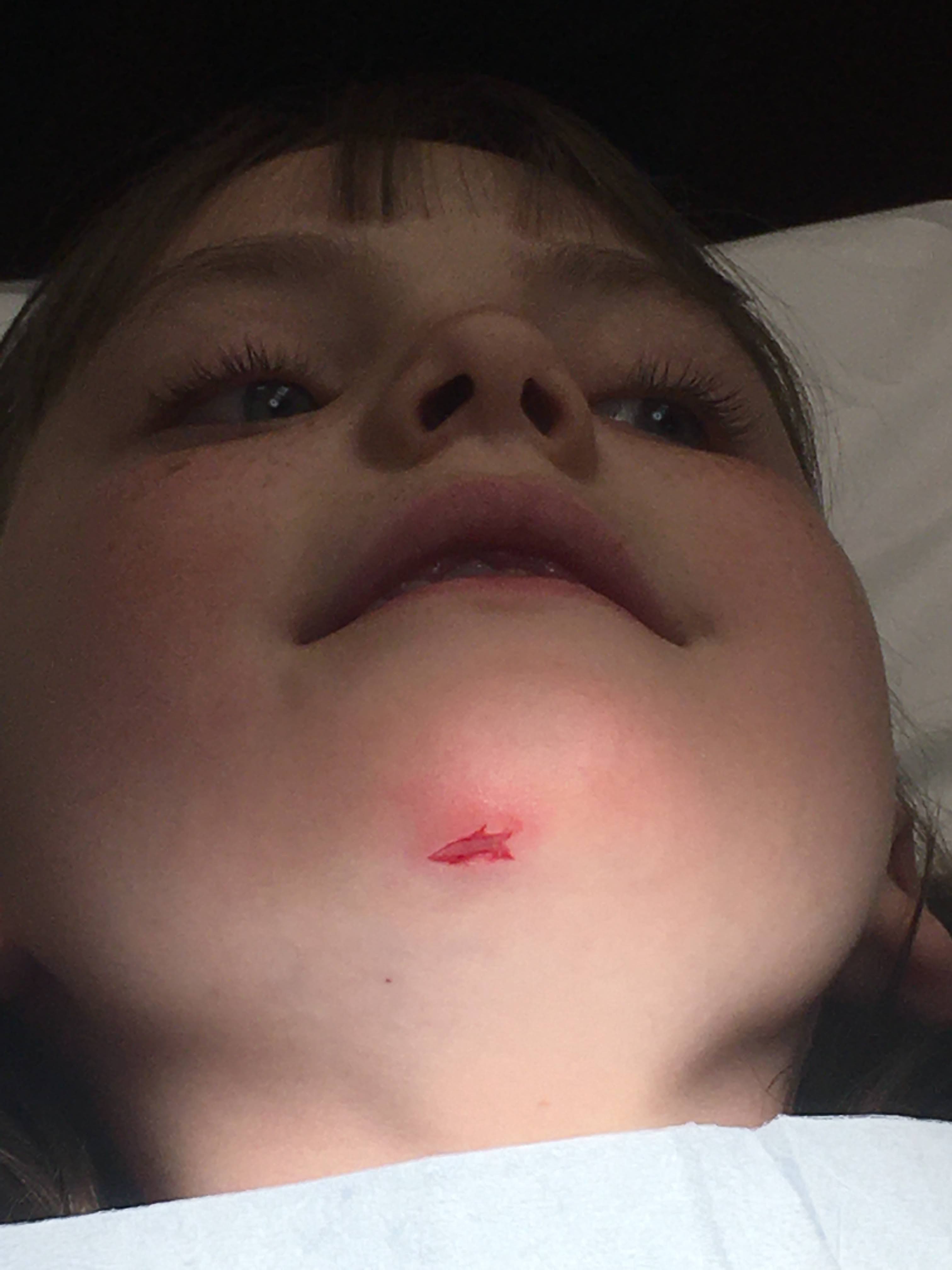 It was shallow but very wide. I would have butterflied it but with an out of state trip I wanted Urgent Care to take care of it for peace of mind.