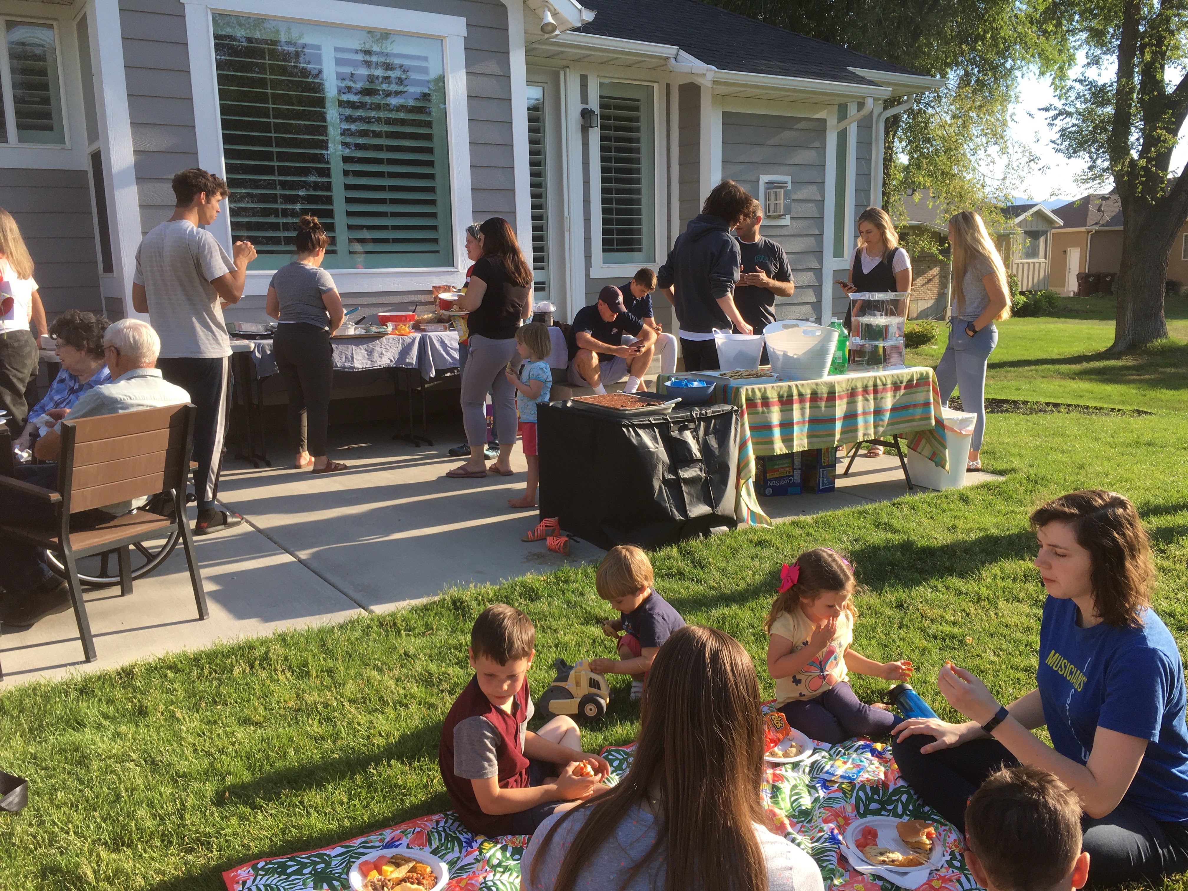 The view over the wall. The youth had a bbq going away party for Spencer, Alexis, and Thomas. I packed a whole bunch and looked for my little kids to put them to bed and they were all over there playing tag games.